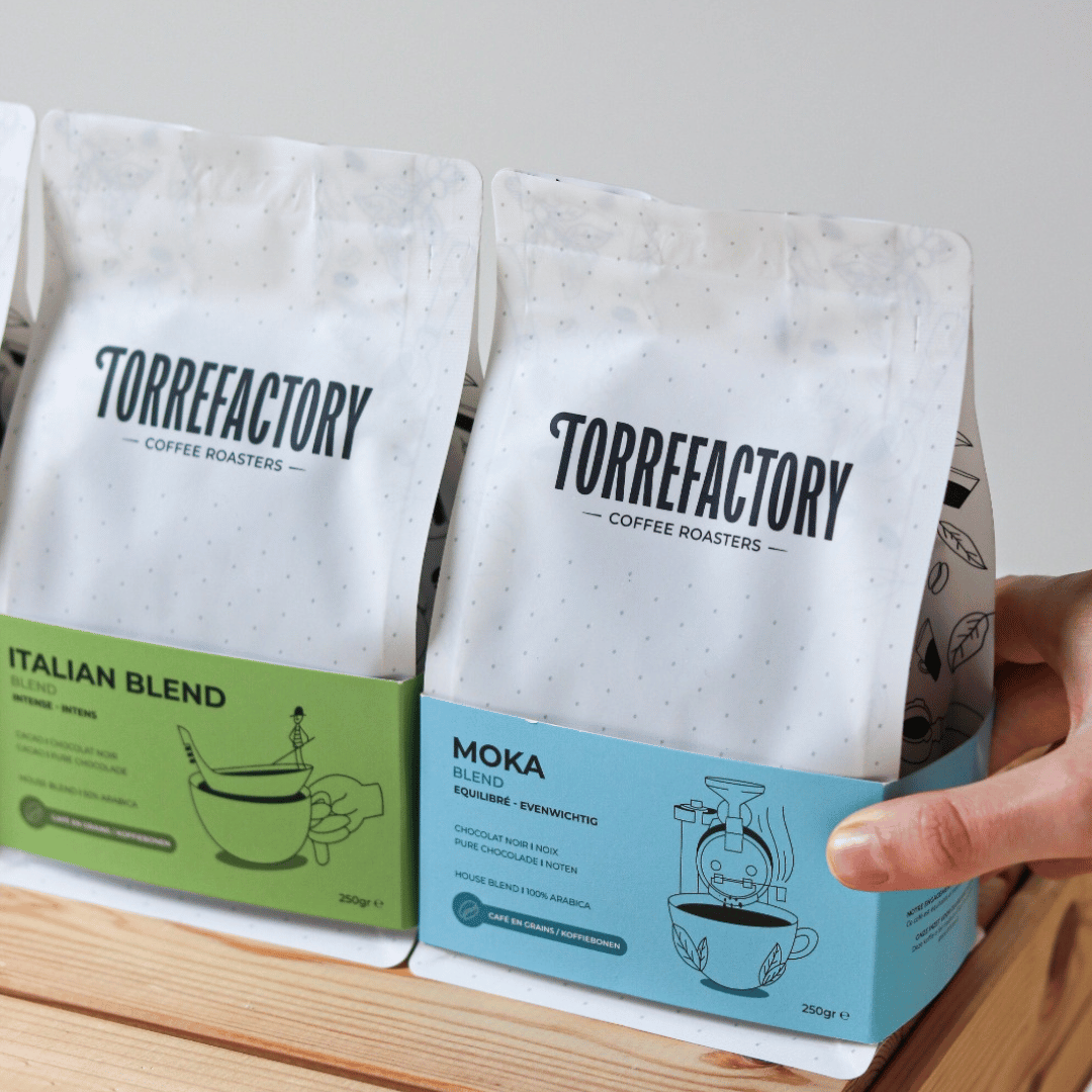 For every 100 points you save through your purchases or other actions, you get 1€ off. You can use these discounts on coffees and coffee sets from the Torrefactory store.